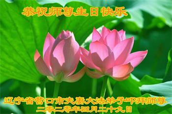 辽宁省抚顺市顺城区大法弟子二人敬上 辽宁省鞍山大法弟子祝师尊生日快乐!