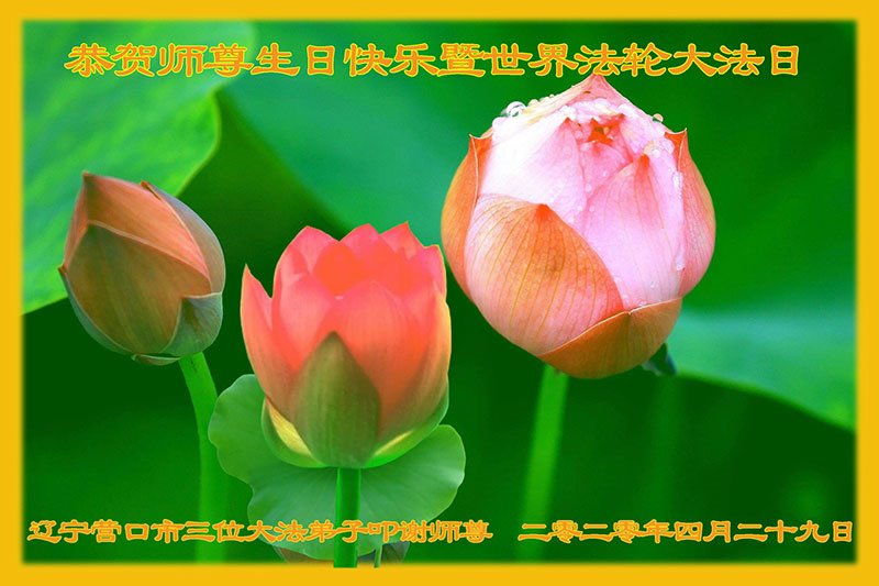 辽宁省营口市一家三位大法弟子恭祝师尊生日快乐!恭贺世界法轮大法日!