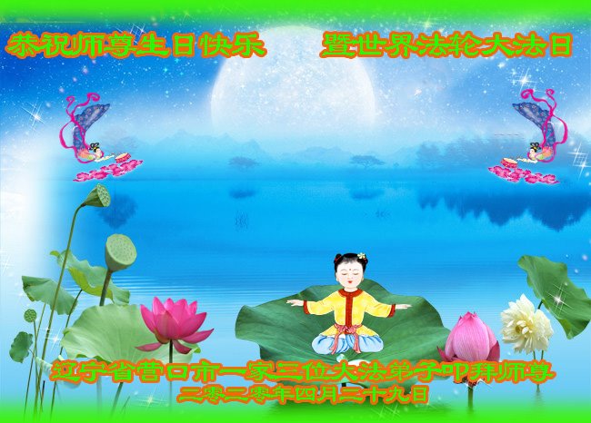 辽宁省营口市一家三位大法弟子恭祝师尊生日快乐!暨世界法轮大法日!