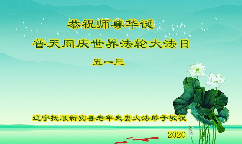 辽宁抚顺新宾县一老年夫妻大法弟子恭祝师尊华诞!普天同庆世界法轮大法日!