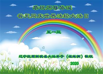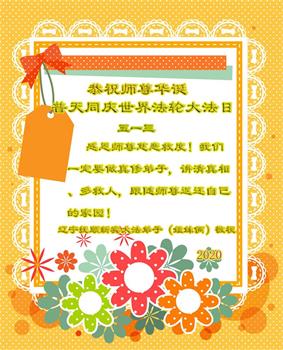 【明慧网二零二零年五月十一日】 辽宁丹东一大法弟子恭贺师尊华诞!庆祝世界法轮大法日!