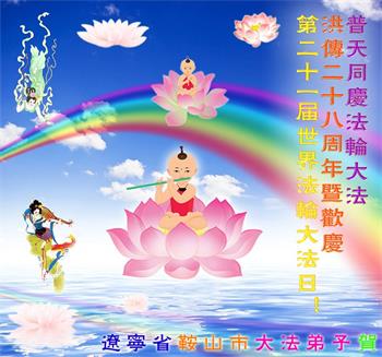 辽宁省鞍山市大法弟子普天同庆法轮大法洪传二十八周年暨欢庆世界法轮大法日!