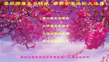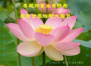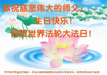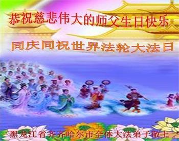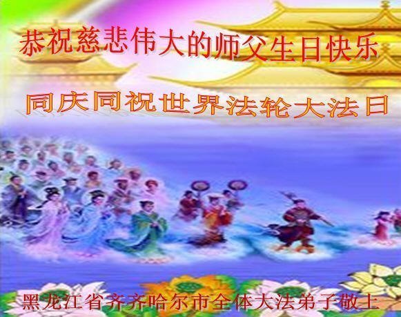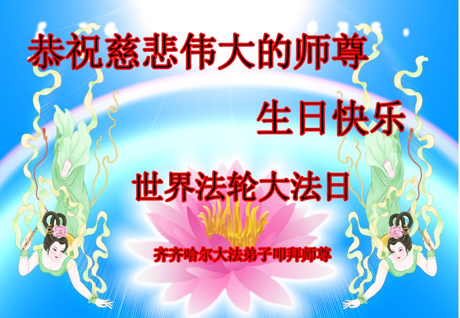 黑龙江省齐齐哈尔市全体大法弟子恭祝师父生日快乐!恭贺世界法轮大法日!