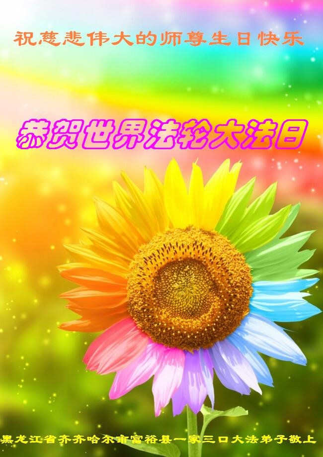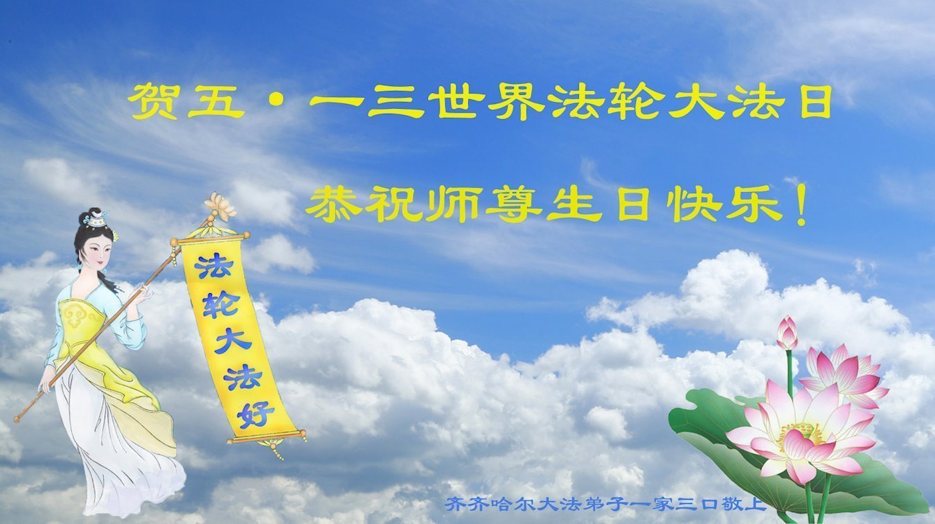 黑龙江省齐齐哈尔三位大法弟子及家人恭贺世界法轮大法日!恭祝师尊生日快乐!