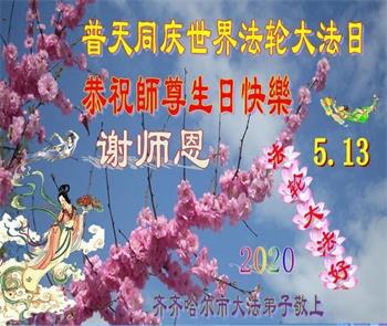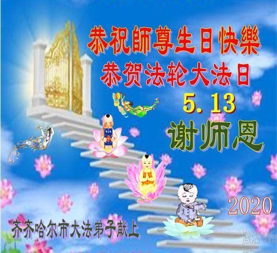 【明慧网二零二零年五月十一日】 黑龙江省齐齐哈尔市大法弟子恭祝慈悲伟大的师尊生日快乐!