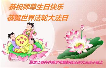 黑龙江省齐齐哈尔市富裕县大法弟子恭祝师尊生日快乐!恭贺世界法轮大法日!