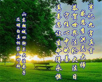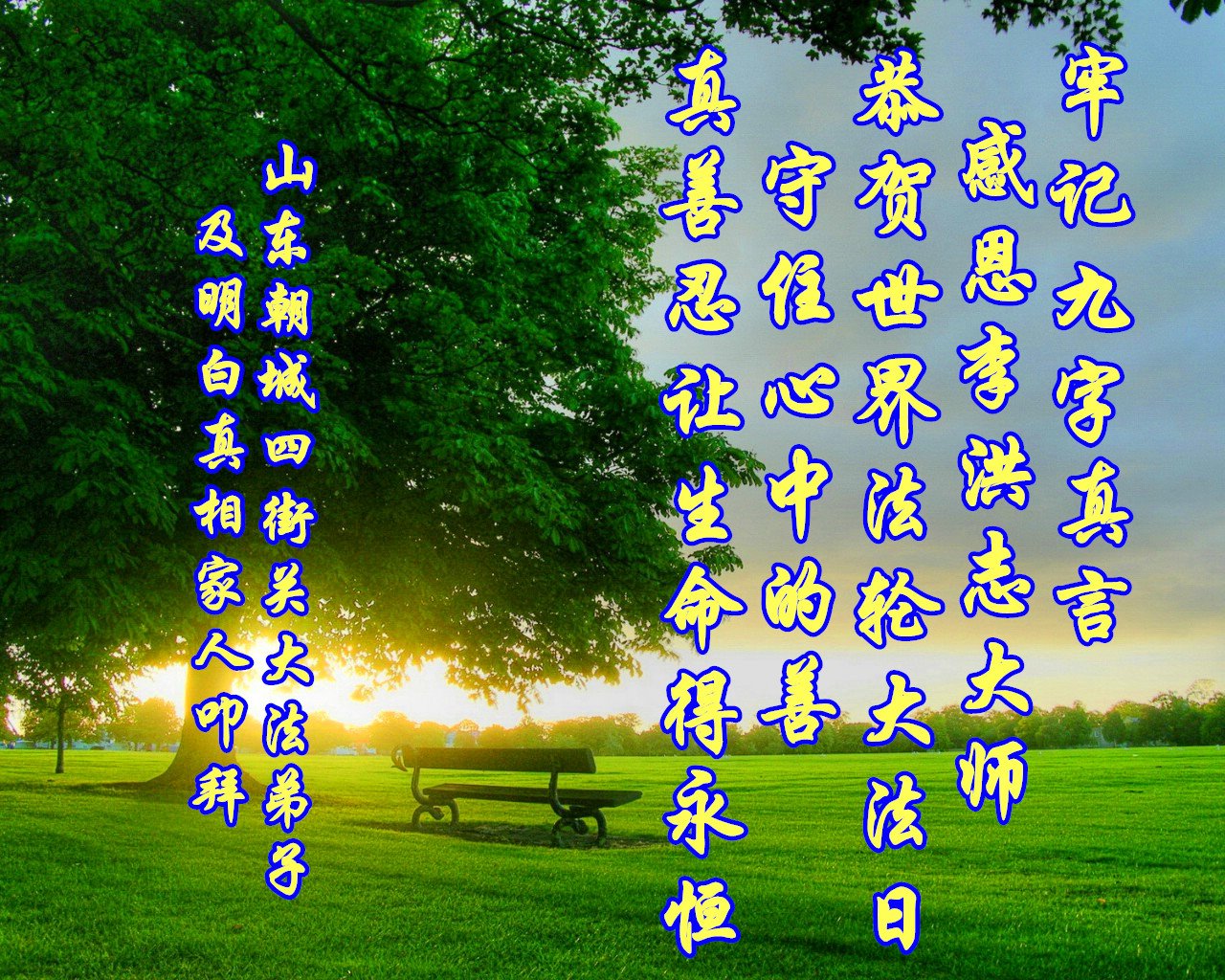 恭贺世界法轮大法日 ! 不负师恩,学法精進,实修,感恩师尊救度! 山东省聊城市莘县朝城全体大法弟子恭祝师尊华诞!