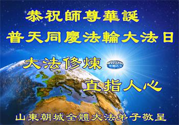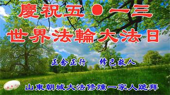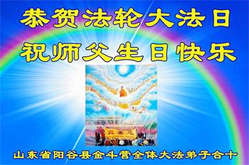 恭贺5·13世界法轮大法日! 山东省聊城市阳谷县金斗营大法弟子恭祝师尊华诞!