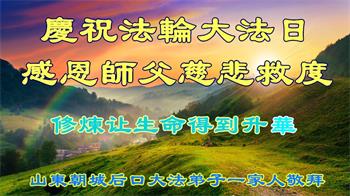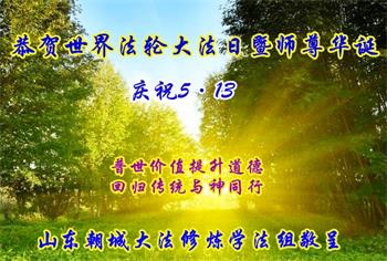 恭贺世界法轮大法日! 弟子们一定做好“三件事”,圆满随师还! 山东省枣庄市大法弟子恭祝5·13世界法轮大法日!