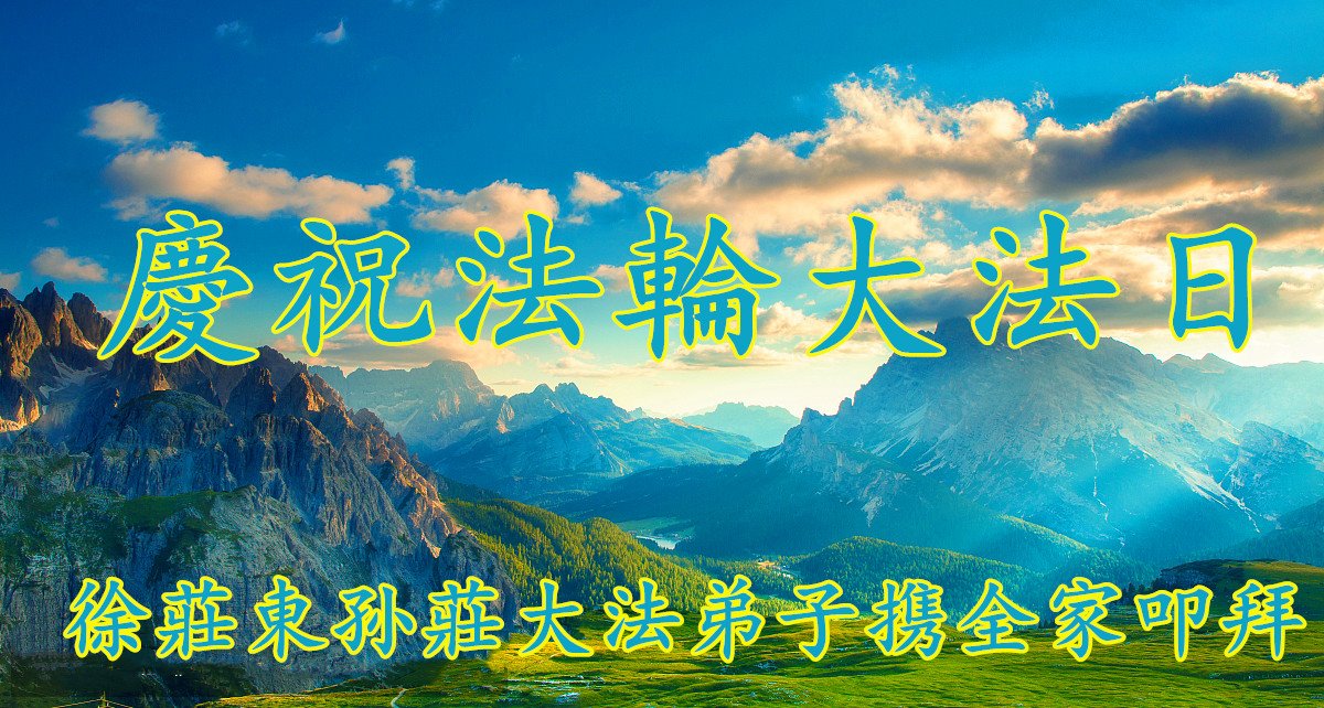 恭贺世界法轮大法日! 师恩浩荡沐浴法光,在庚子年五月十三普天同庆的日子里,朝城大法弟子向慈悲伟大的师尊致以心中最崇高的敬意!感恩师尊慈悲救度! 弟子深刻明白正法進程势不可挡,如果没有师父正法,宇宙间所有的生命都将没法得救,我们慈悲的师父珍惜世间的每一个生命,在灾难中慈悲的再给人机会,只要真心诚念“九字真言”只要真心向神佛忏悔,就能得到救度。我们的师父用巨大承受换来的每分每秒,就是希望能多一个人明白真相多一个生命拥有美好的未来。 弟子一定勇猛精進,修心去救人,学法再精進。理智讲清真相多救人,不被乱像迷惑,踏踏实实做好“三件事”,坚定地信师信法。最大限度符合常人社会,不让常人看着我们不理智,路要走正,以法为师,精進实修,配合整体。是师父和大法的威力指引着我们救度世人,只有修好自己才能在修炼路上走稳走正。谢谢师父! 山东省聊城市莘县东孙庄大法弟子和全家恭贺法轮大法日!