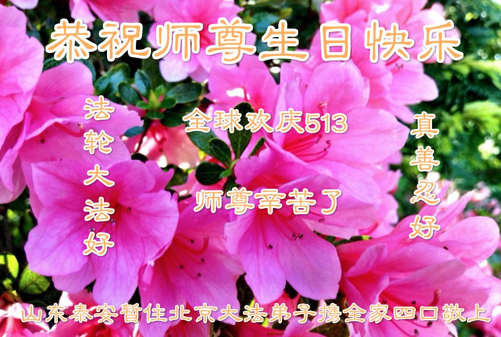 恭贺5·13世界法轮大法日! 恭祝师尊华诞,庆贺世界法轮大法日! 山东省聊城市莘县朝城一家大法弟子恭祝师父生日快乐!