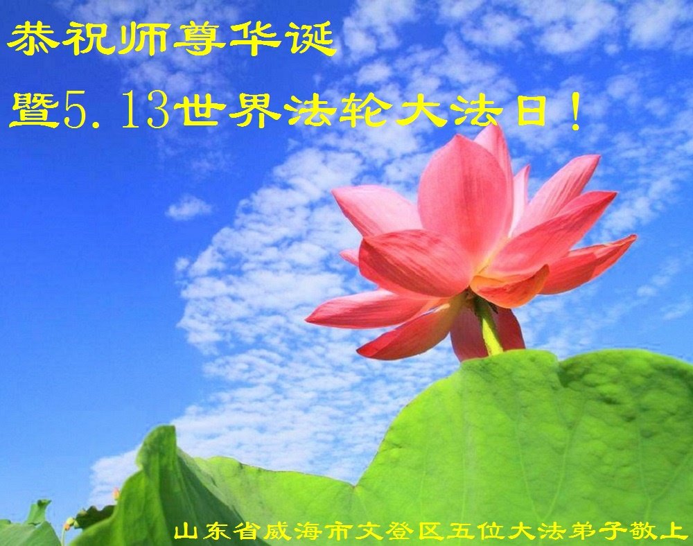 山东省威海市文登区五位大法弟子恭祝师尊华诞暨5.13世界法轮大法日!