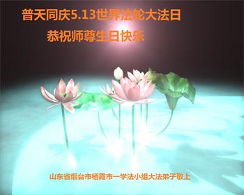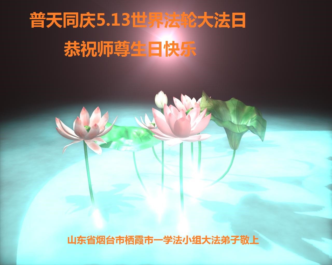山东省烟台市栖霞市一学法小组大法弟子庆5.13世界法轮大法日!祝师尊生日快乐!