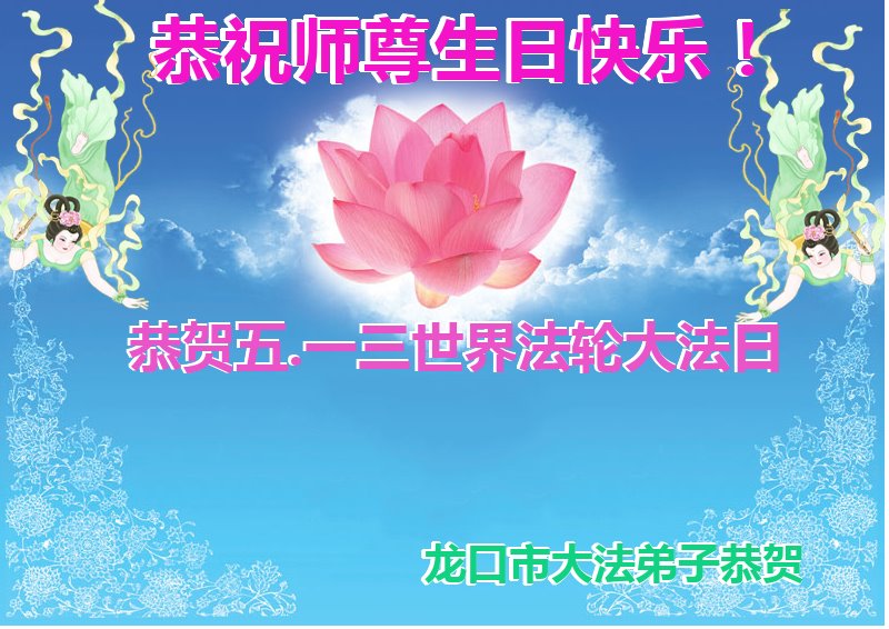 普天同庆5.13世界法轮大法日!恭祝慈悲伟大的师尊生日快乐! 山东省烟台市栖霞市一学法小组大法弟子敬上 山东省烟台市龙口市大法弟子恭贺世界法轮大法日!恭祝慈悲伟大的师尊生日快乐!