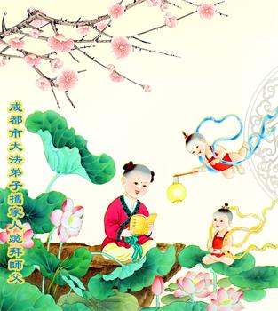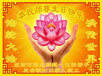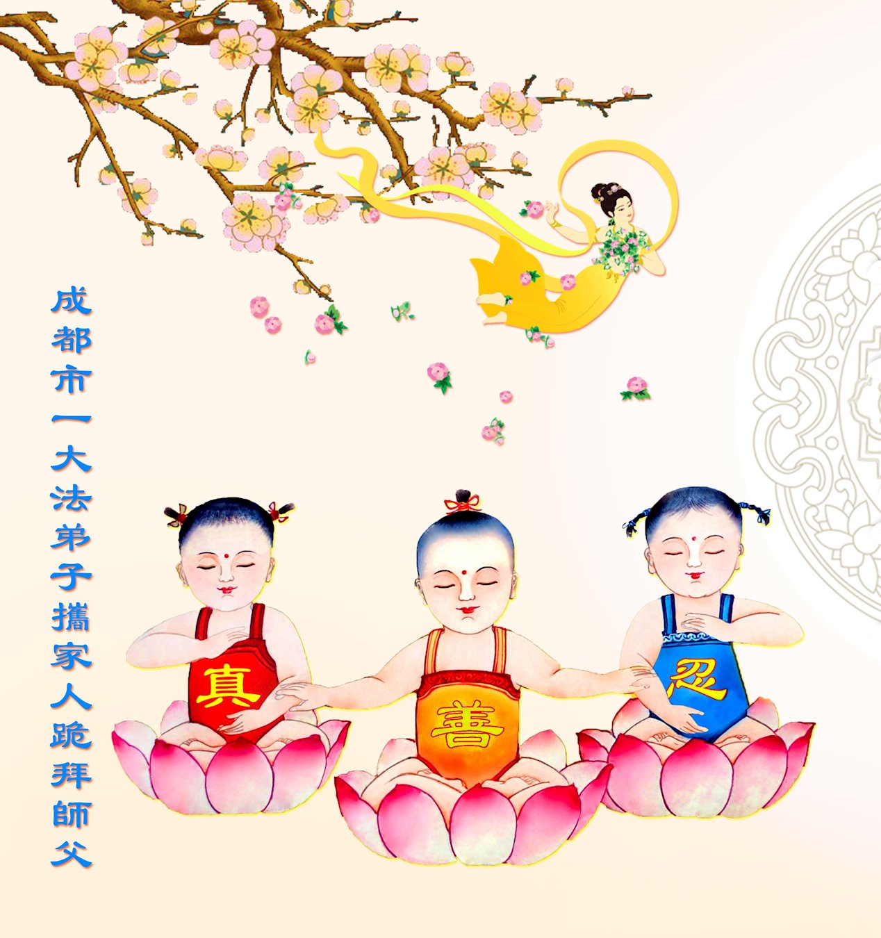 四川省成都市一大法弟子携家人恭祝慈悲伟大的师尊生日快乐!