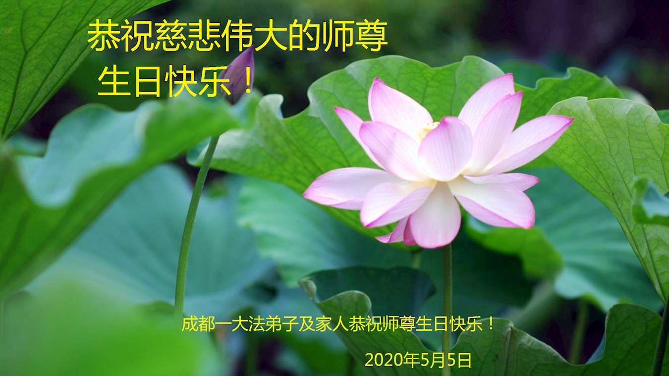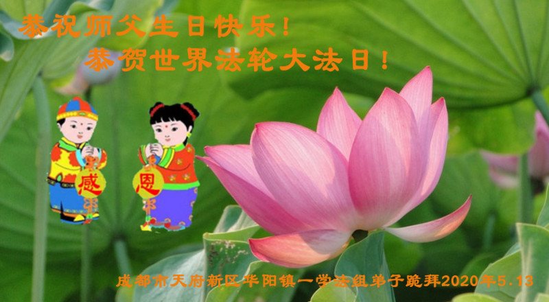 二零二零年五月十三日是师尊六十九岁的华诞!也是法轮大法弘传二十八周年,在此四川成都犀浦法轮大法学员恭祝师尊生日快乐!感恩师尊的慈悲弘传,一路保护,我们唯有坚定的信师信法、精進实修,做好三件事以报师恩!