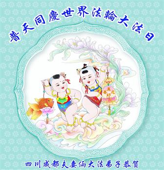 【明慧网二零二零年五月十一日】 四川成都夫妻俩大法弟子恭贺世界法轮大法日!