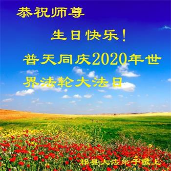 祝贺世界法轮大法日!法轮大法好!真善忍好! 成都市一学法小组8人敬上 2020年4月2日 四川省成都市西门一学法小组大法弟子恭祝慈悲伟大的师尊生日快乐!祝贺世界法轮大法日!