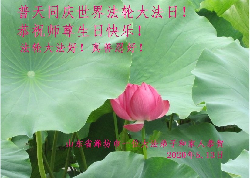 【明慧网二零二零年五月十一日】 山东省潍坊市寿光市大法弟子全家恭祝慈悲伟大的师尊生日快乐!