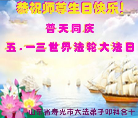 山东省潍坊安丘市大法弟子恭祝师父生日快乐!普天同庆世界法轮大法日!