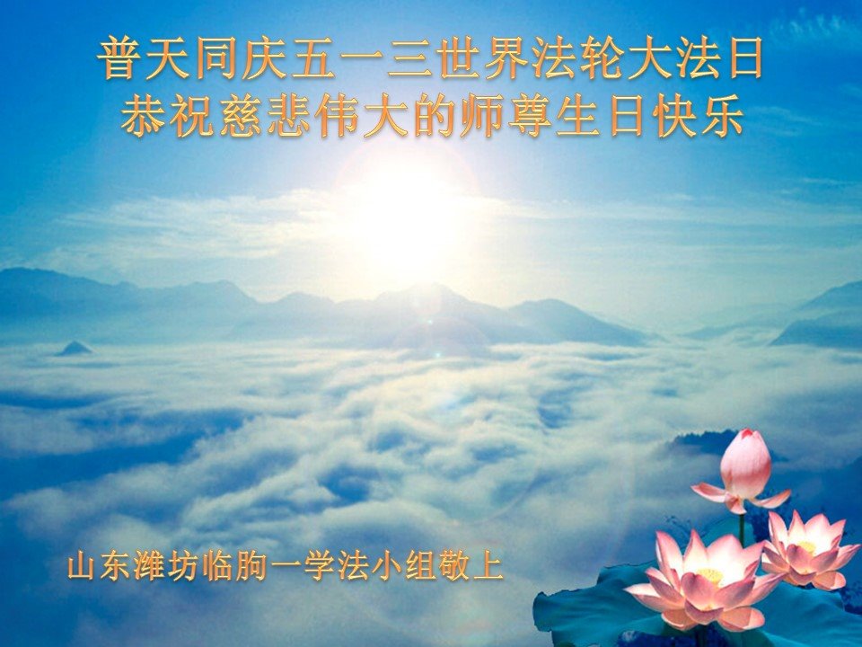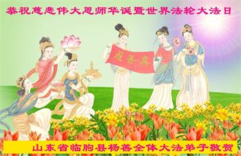 恭贺世界法轮大法日! 山东省潍坊市临朐县杨善全体大法弟子恭祝师尊华诞暨世界法轮大法日!