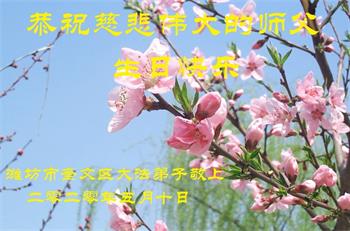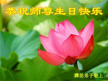 山东潍坊全体大法弟子恭祝慈悲伟大的师尊生日快乐!