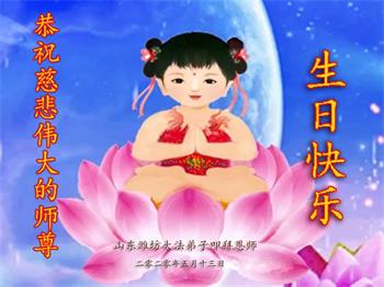 感恩师尊的慈悲救度!圆容师尊所要的,证实大法,救度众生。叩拜师父! 山东省潍坊市昌邑市两位大法弟子恭祝慈悲伟大的师尊生日快乐!