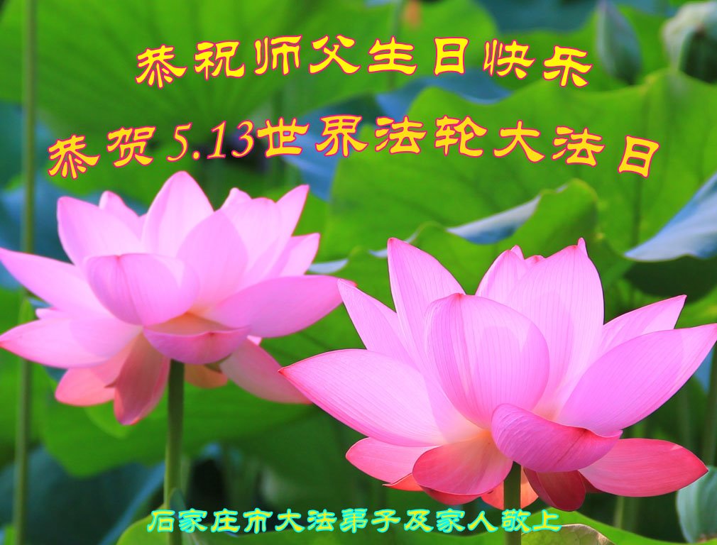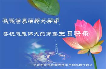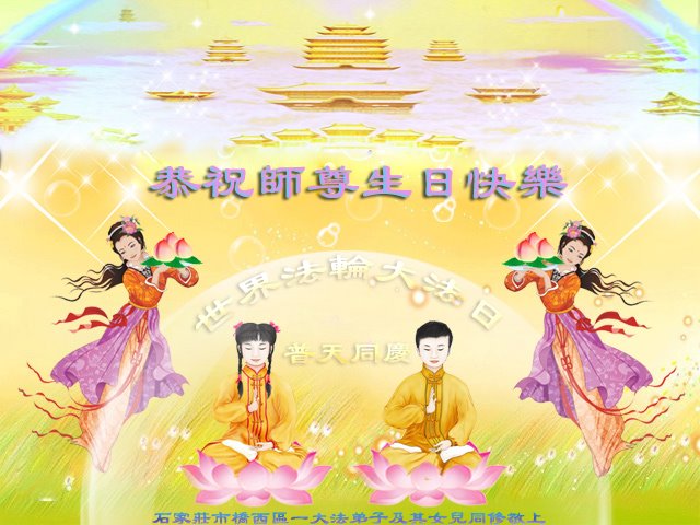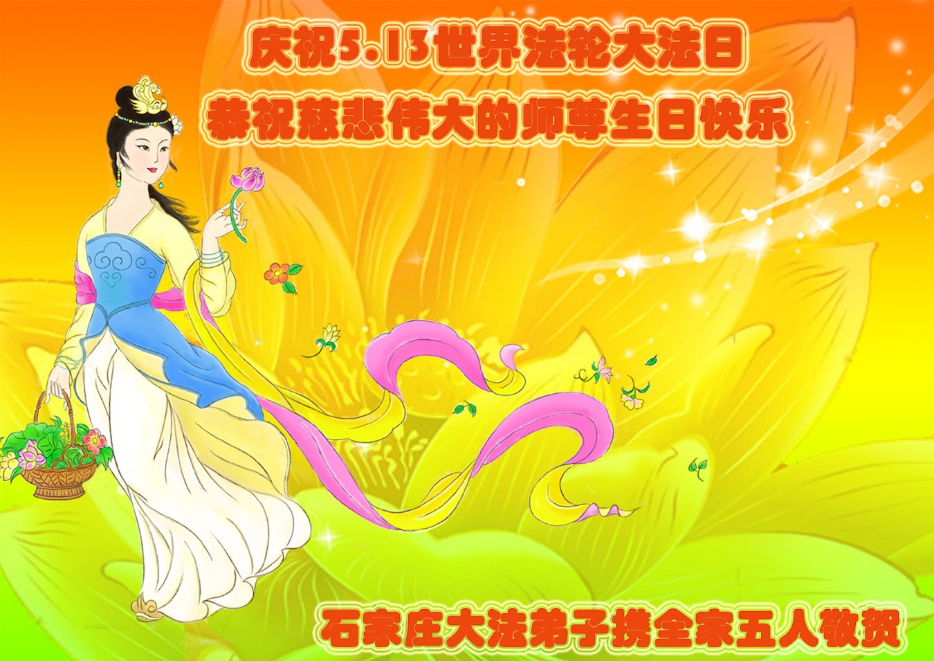 河北省石家庄市长安区一大法弟子全家六人恭祝师尊华诞暨世界法轮大法日!