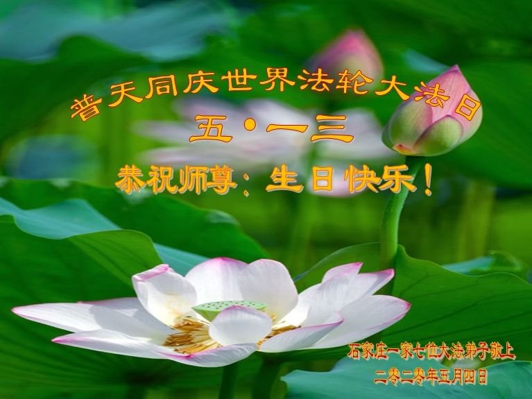 河北省石家庄市裕华区大法弟子敬贺 二零二零年五月三日 河北省石家庄市一家七位大法弟子恭贺法轮大法日!