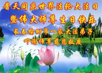 普天同庆世界法轮大法日! 吉林省长春榆树市一家大法弟子恭祝伟大师尊生日快乐!