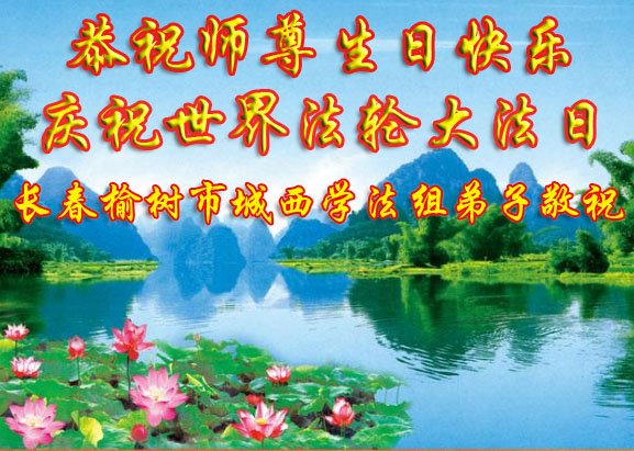 普天同庆世界法轮大法日! 吉林省长春榆树市一家大法弟子叩谢师尊慈悲救度! 吉林省长春榆树市城西学法组大法弟子恭祝师尊生日快乐!
