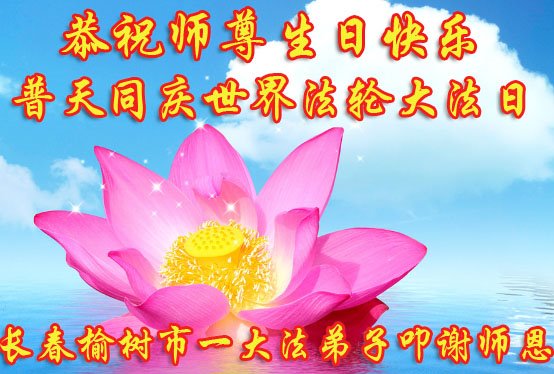 普天同庆世界法轮大法日! 吉林省长春榆树市一大法弟子叩谢师恩! 吉林省长春市宽城区一大法弟子庆祝世界法轮大法日!