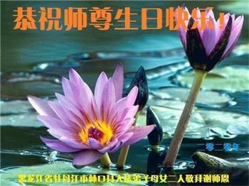 黑龙江省牡丹江市林口县大法弟子母女二人恭祝师尊生日快乐!