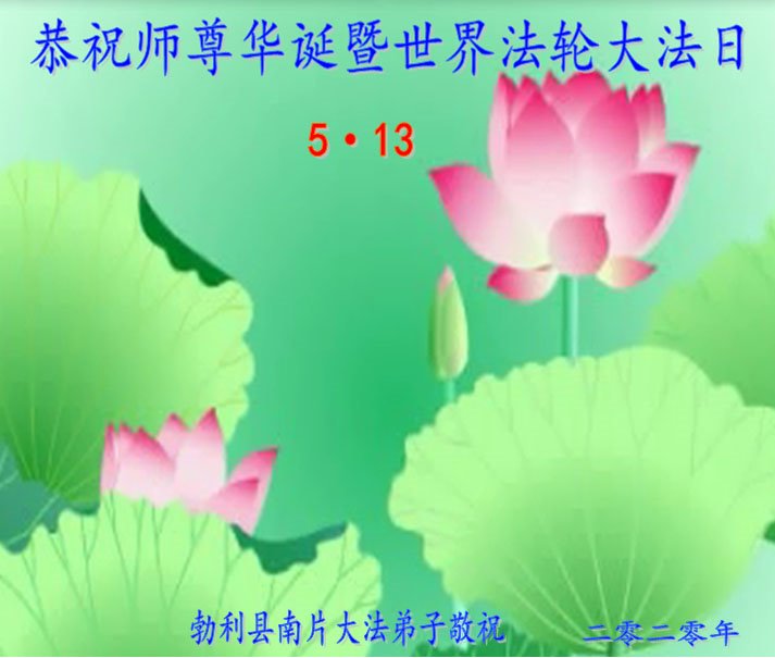 【明慧网二零二零年五月十一日】 黑龙江省伊春市金林区一大法弟子恭祝慈悲伟大的师尊生日快乐!恭贺世界法轮大法日!