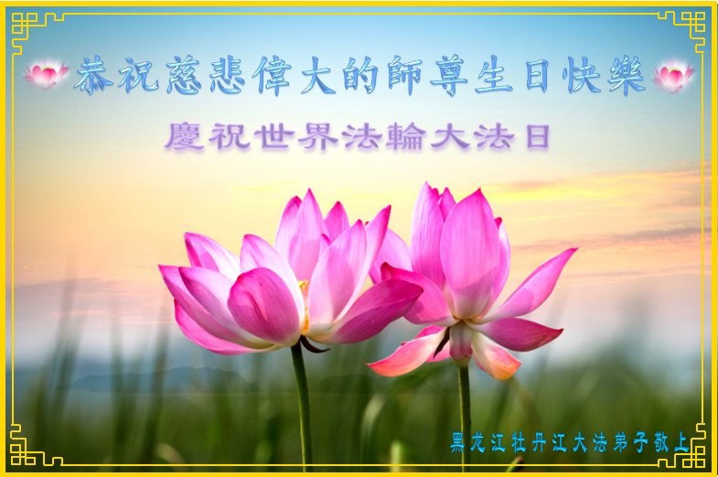 黑龙江省牡丹江市大法弟子恭祝慈悲伟大的师尊生日快乐!庆祝世界法轮大法日!