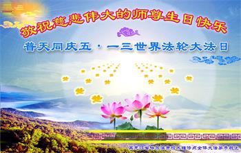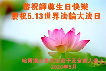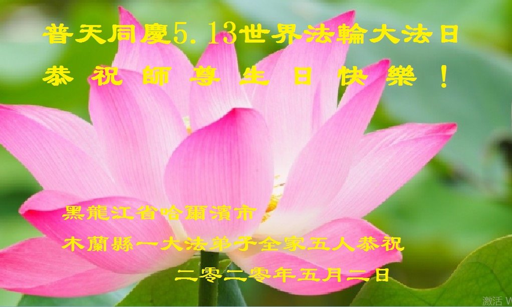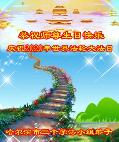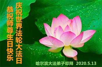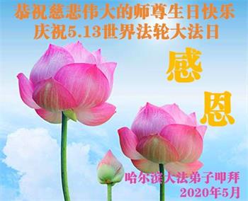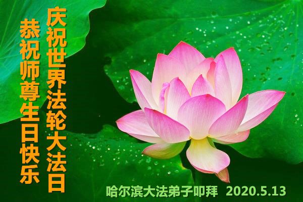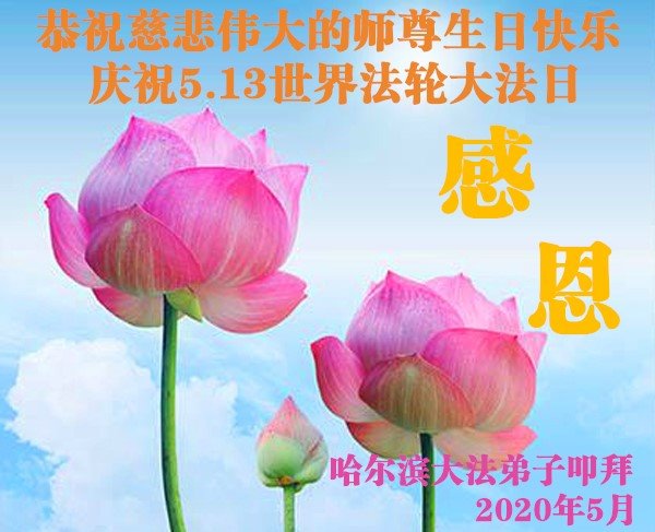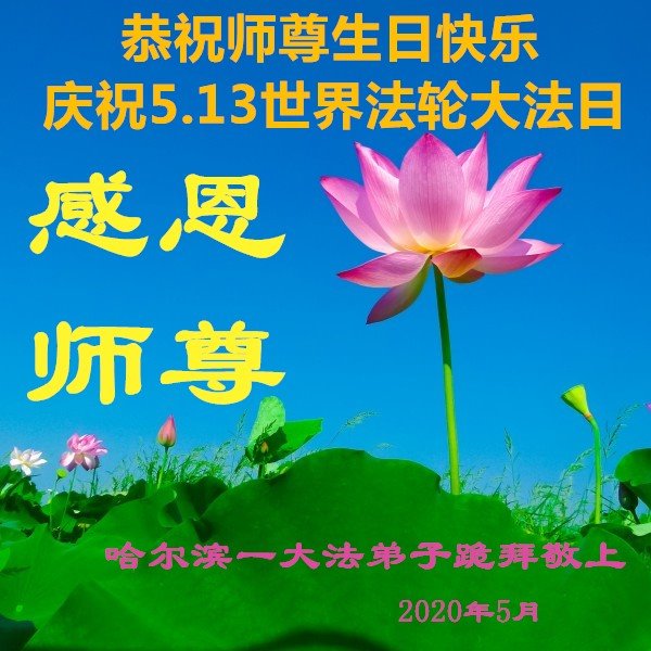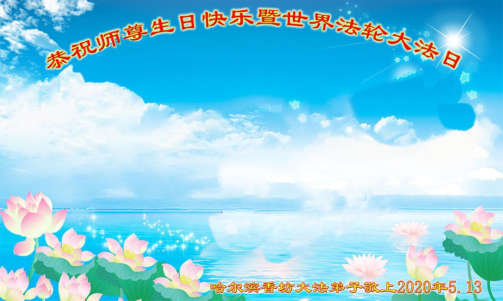 【明慧网二零二零年五月十一日】 黑龙江省哈尔滨大法弟子恭祝慈悲伟大的师尊生日快乐!庆祝世界法轮大法日!