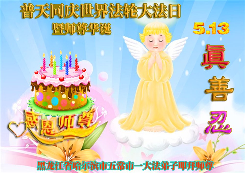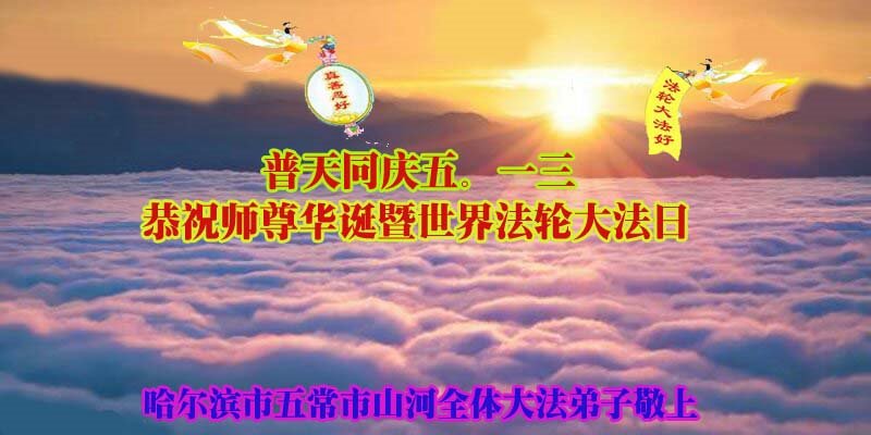 黑龙江省哈尔滨一大法弟子恭祝师尊华诞快乐!感恩师尊慈悲救度!普天同庆5.13世界法轮大法日!