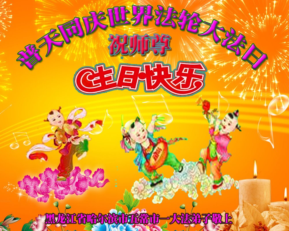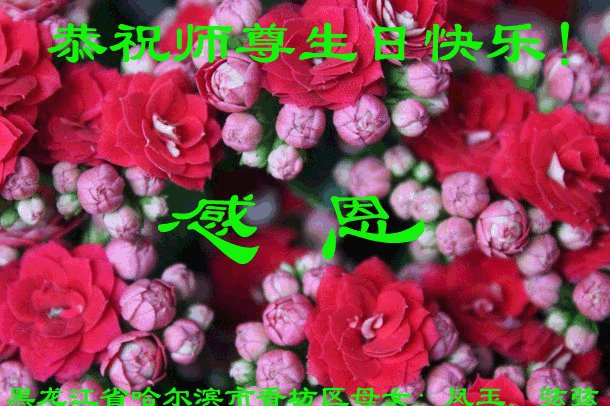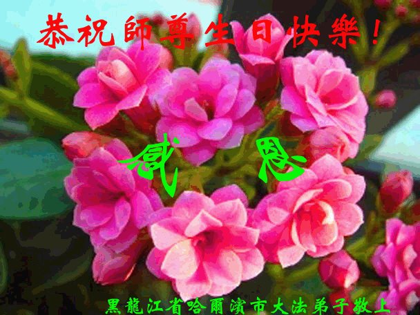 用尽人类最美好的词汇无法表达我们对师尊的感恩,千言万语一句话:慈悲伟大的师尊您好!师尊生日快乐!恭祝世界法轮大法日! 黑龙江省哈尔滨市五常市一夫妻大法弟子恭祝世界法轮大法日!