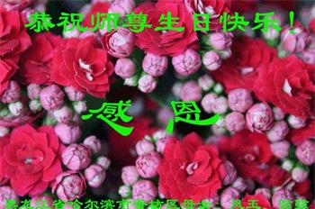 弟子想念师尊。我们一定好好修炼,不辜负师尊赋予我们的责任,不让众生失望。 黑龙江省哈尔滨一大法弟子恭祝慈悲伟大的师父生日快乐!