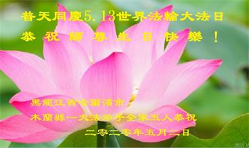 恭祝师尊华诞!庆祝5·13世界法轮大法日!感恩师尊慈悲救度! 黑龙江省哈尔滨市木兰县一大法弟子全家五人恭祝师尊生日快乐!