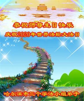 敬祝师父生日快乐!谢谢师父慈悲救度。 2020年5月2日敬上 黑龙江省哈尔滨三个学法小组大法弟子恭贺世界法轮大法日暨师尊华诞!
