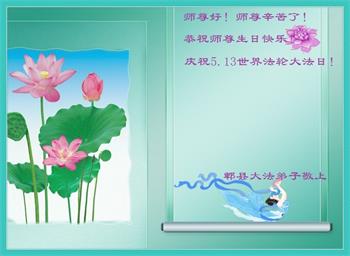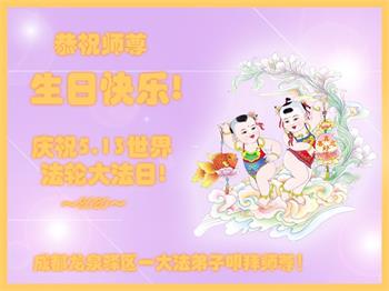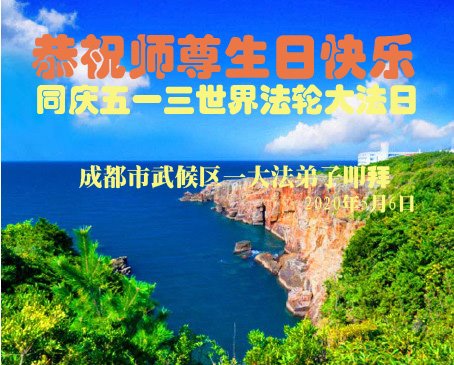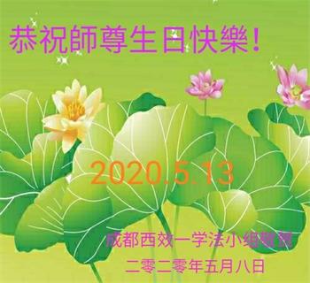 【明慧网二零二零年五月十一日】 四川省成都市龙泉驿区一大法弟子恭祝师尊生日快乐!