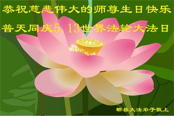 四川省成都市郫县大法弟子恭祝慈悲伟大的师尊生日快乐!普天同庆世界法轮大法日!