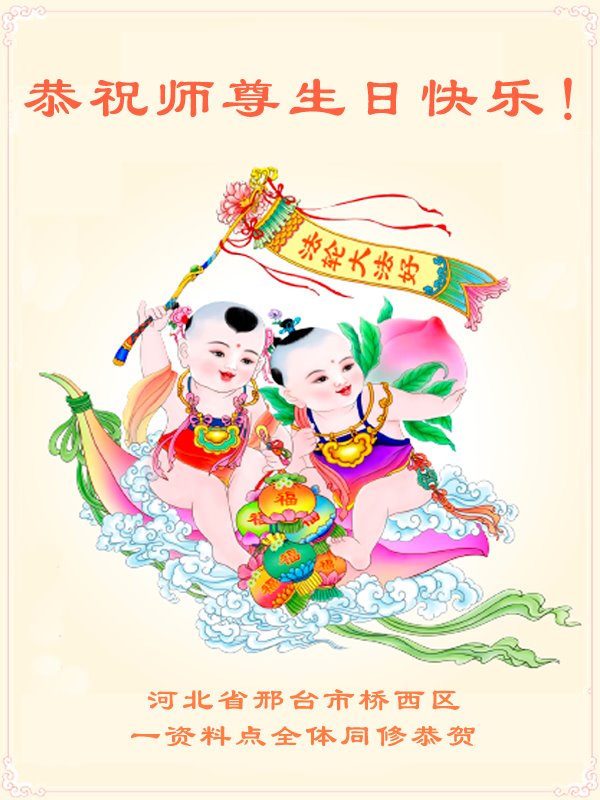 我们一定要整体配合好,做好三件事,修好自己,以报师恩,兑现誓约! 河北省大法弟子恭祝师尊生日快乐!