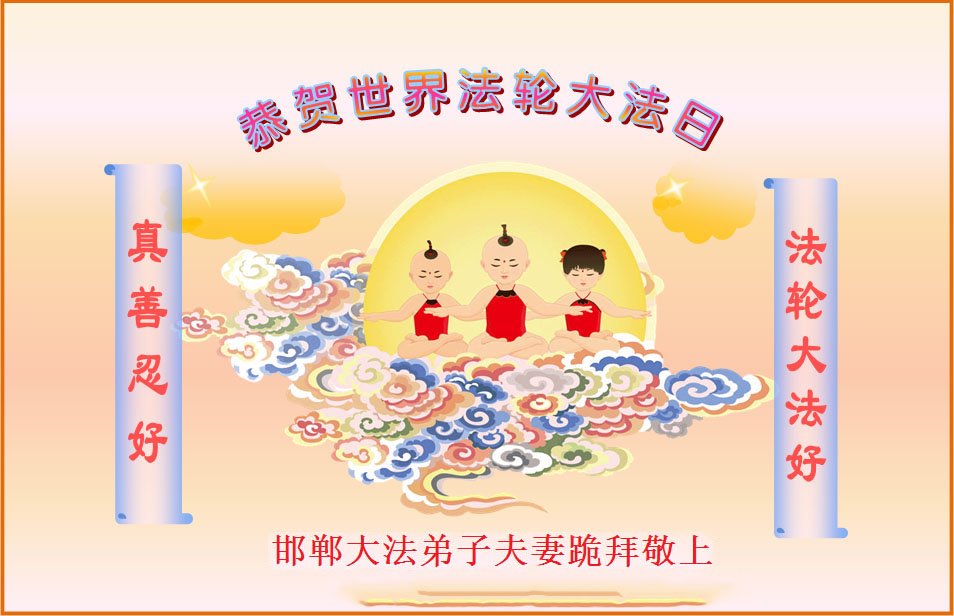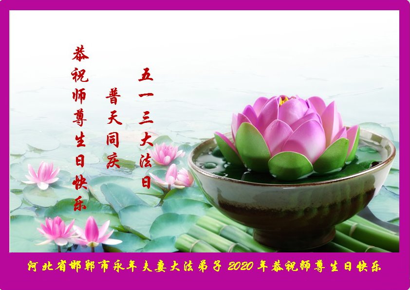 河北邯郸夫妻大法弟子恭祝慈悲伟大的师尊生日快乐!