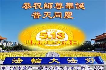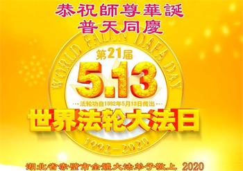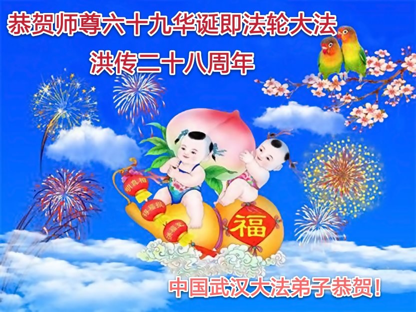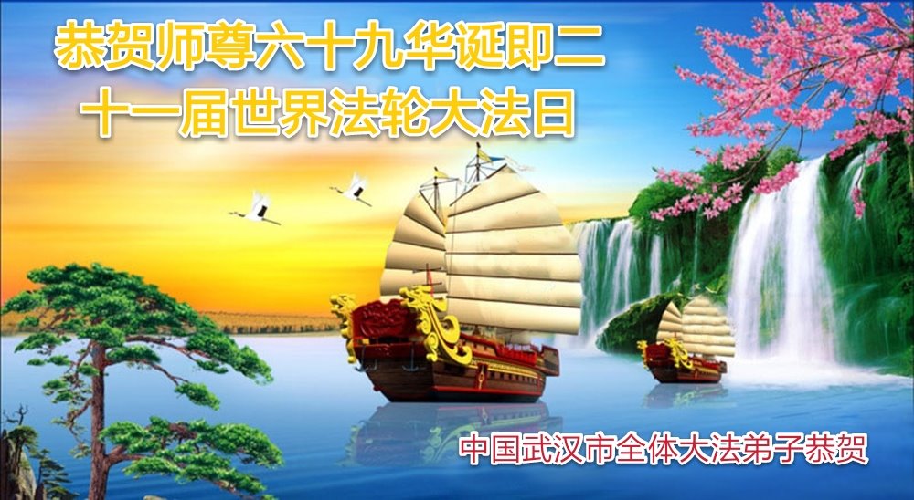 中国湖北省武汉大法弟子恭贺师尊华诞!普天同庆世界法轮大法日!