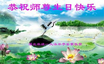 湖北省黄冈市麻城市一大法弟子全家恭祝师尊生日快乐!