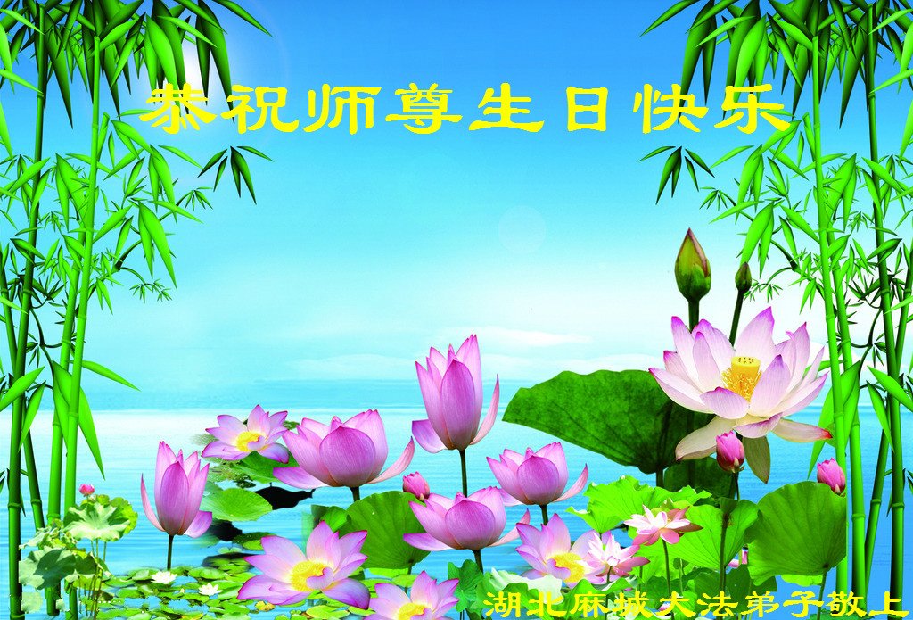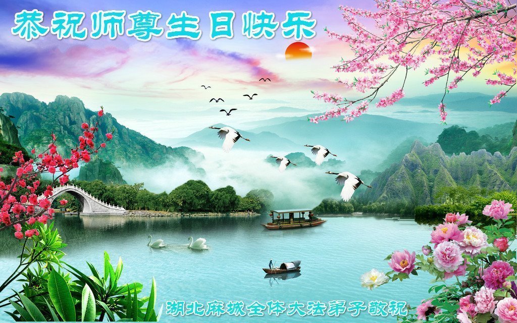 湖北省黄冈市麻城市大法弟子恭祝师尊生日快乐!