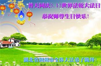 湖北省荆州市全体大法弟子恭祝师尊生日快乐!普天同庆5.13世界法轮大法日!