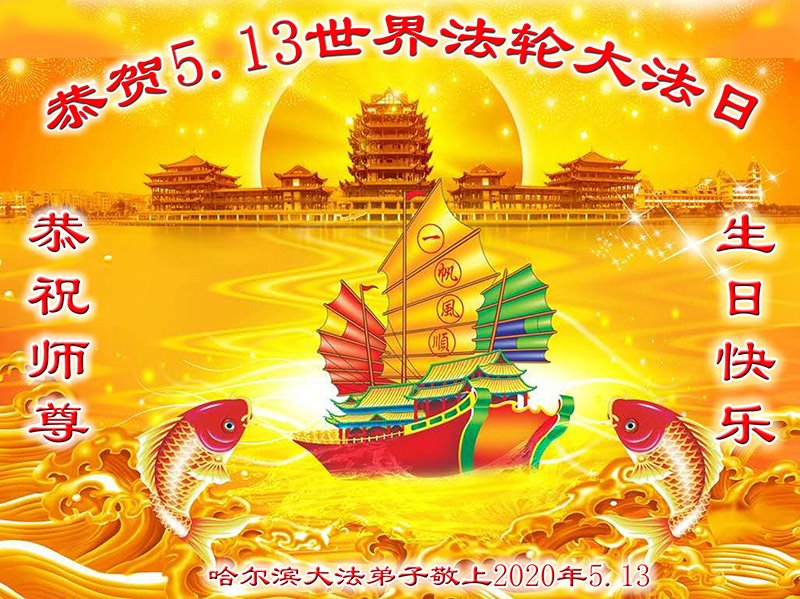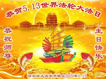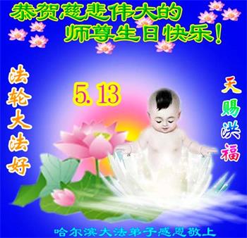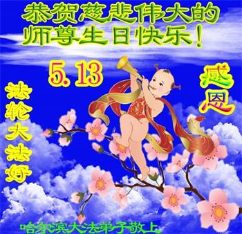 黑龙江省哈尔滨大法弟子恭贺5.13世界法轮大法日!恭祝师尊生日快乐!